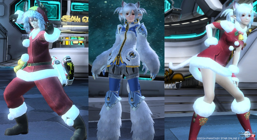 左から、かえさん(レッドサンタスーツ)、柚さん(ファニートレイター)、柚さん(レッドサンタドレス)